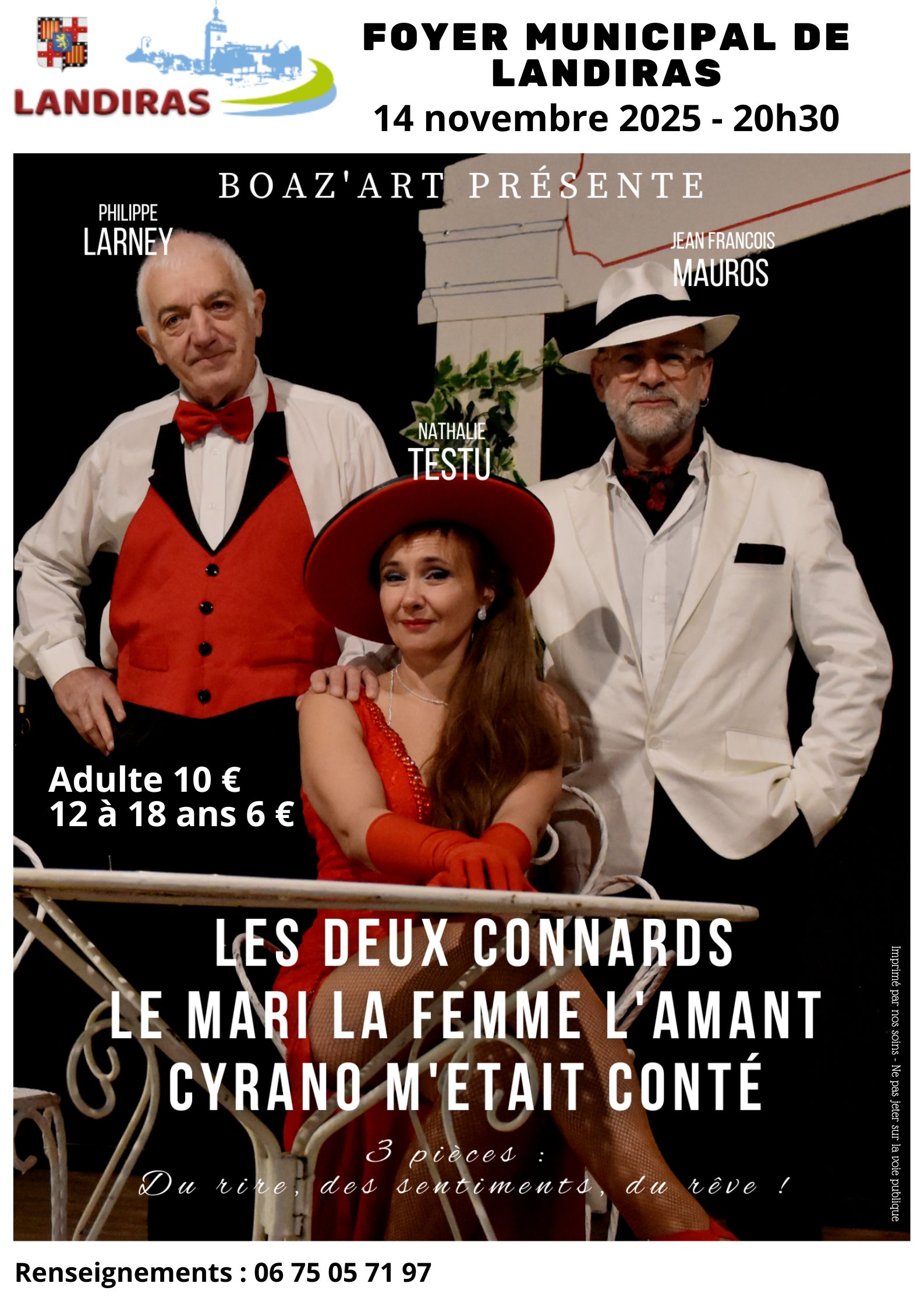 20 h 30 - Foyer municipal - Tarif : 10 €/Réduit 6 € Mme Baraduc : 06 75 05 71 97