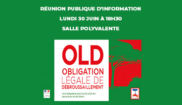 Cette réunion a pour objet de fournir aux administrés toutes les informations pratiques nécessaires à la compréhension et au respect de la réglementation. lundi 30 juin à 18h 30 Salle polyvalente