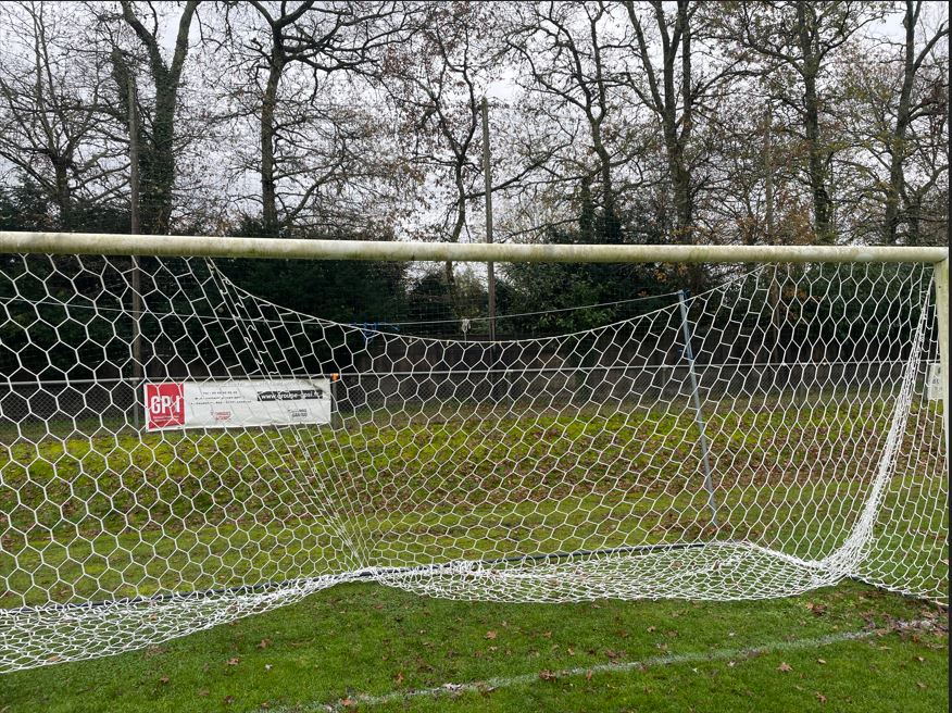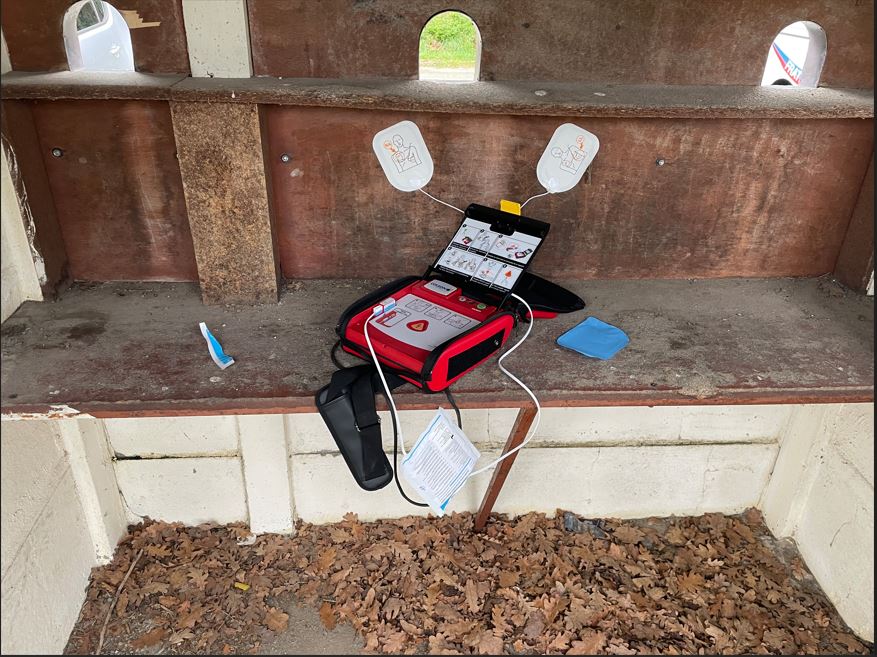 un défibrillateur, une barrière ainsi que les filets des cages de football.